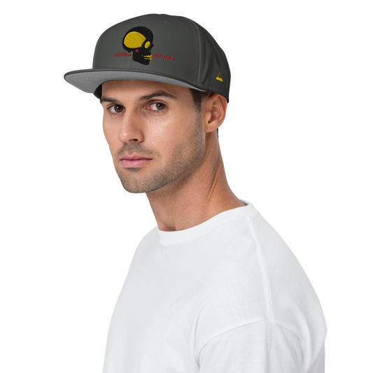 Charcoal Grey Snapback Hat with Black and Gold Skull Embroidery | Unique ARAWMANTICKS Streetwear